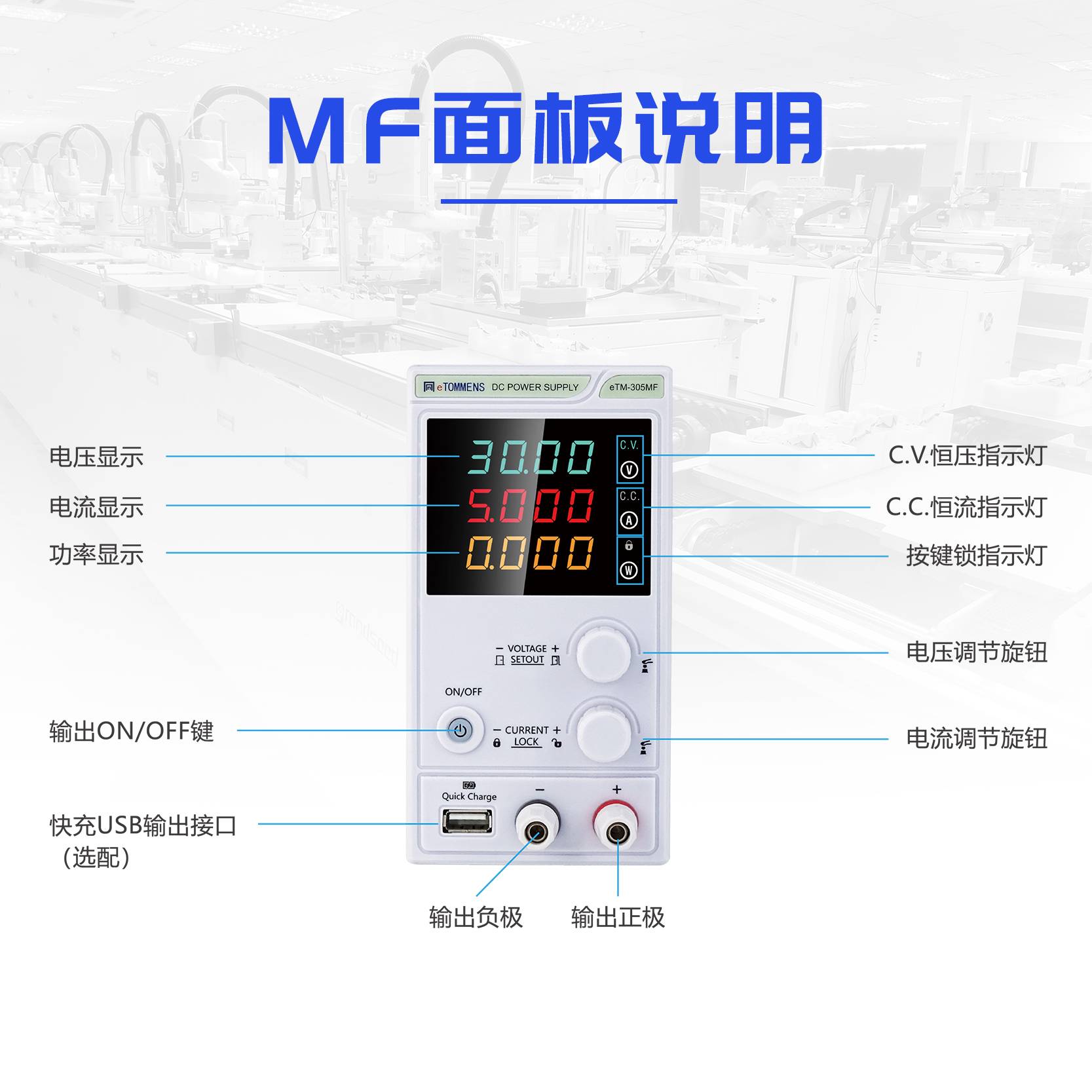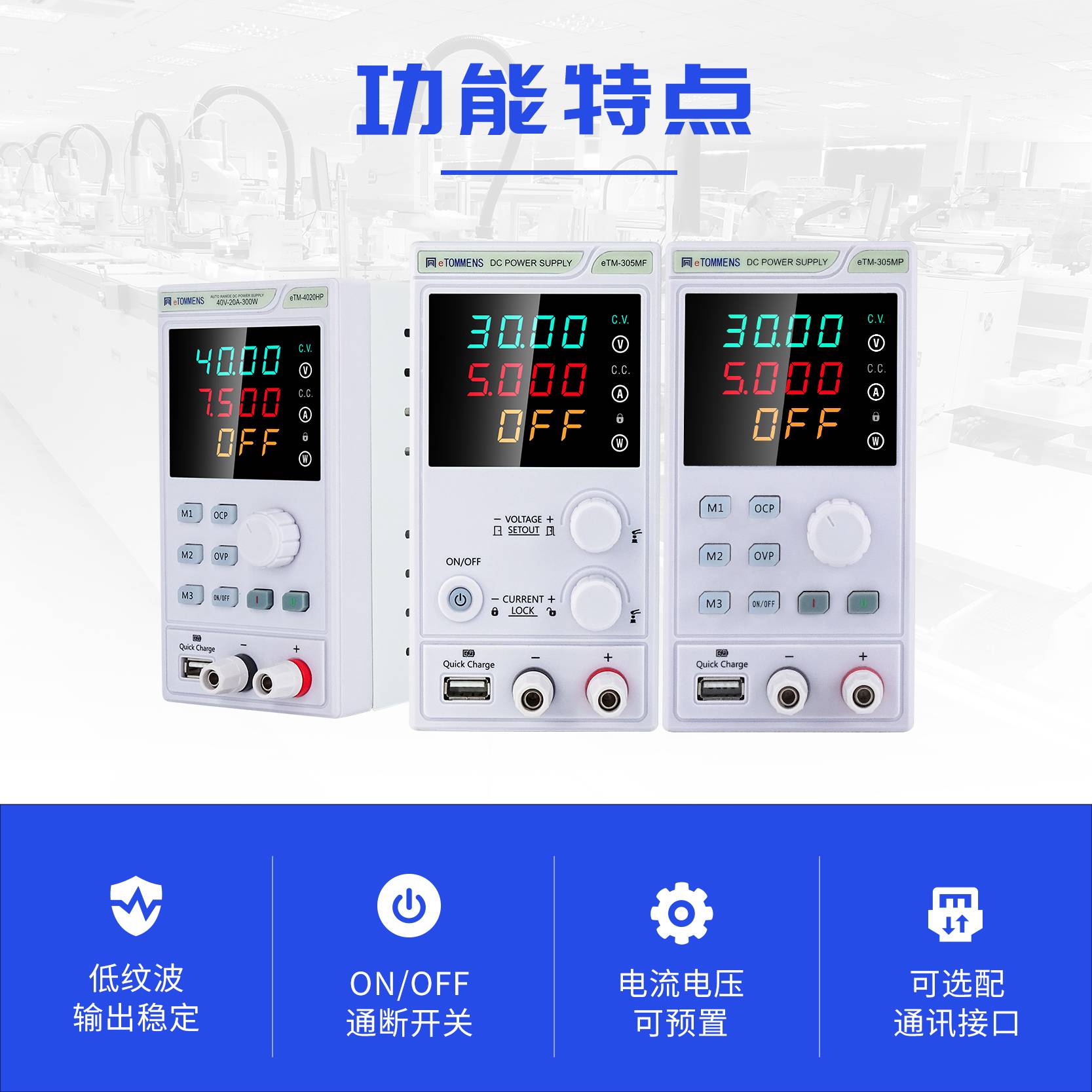 同门6000W台式电位器款直流稳压电源四窗数据显示,运行状态一目了然。电位器操作,电压电流调节方便编辑。具备SENSE补偿功能,有效减少线损导致的压降。具备10mV/10mA分辨率;具备短路、过压、过流、过功率、反极性保护功能。输出效率高,一键控制输出通断开关。 -