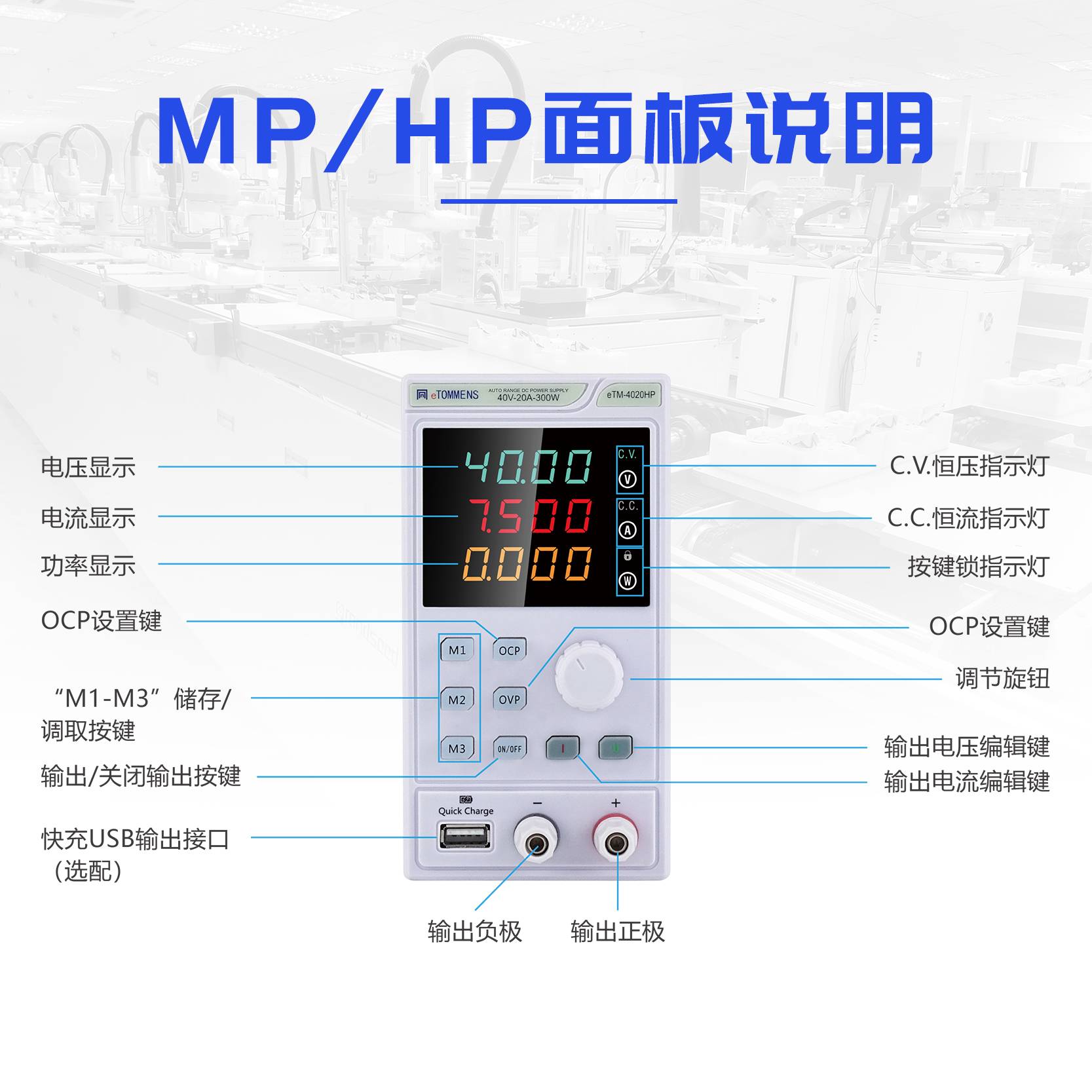 同门6000W可编程直流稳压电源四窗数据显示,运行状态一目了然。6组便捷储存参数,实现快速调用。List序列输出功能。具备SENSE补偿功能,有效减少线损导致的压降。具备10mV/10mA分辨率;具备短路、过压、过流、过功率、反极性保护功能。输出效率高,一键控制输出通断开关。 -