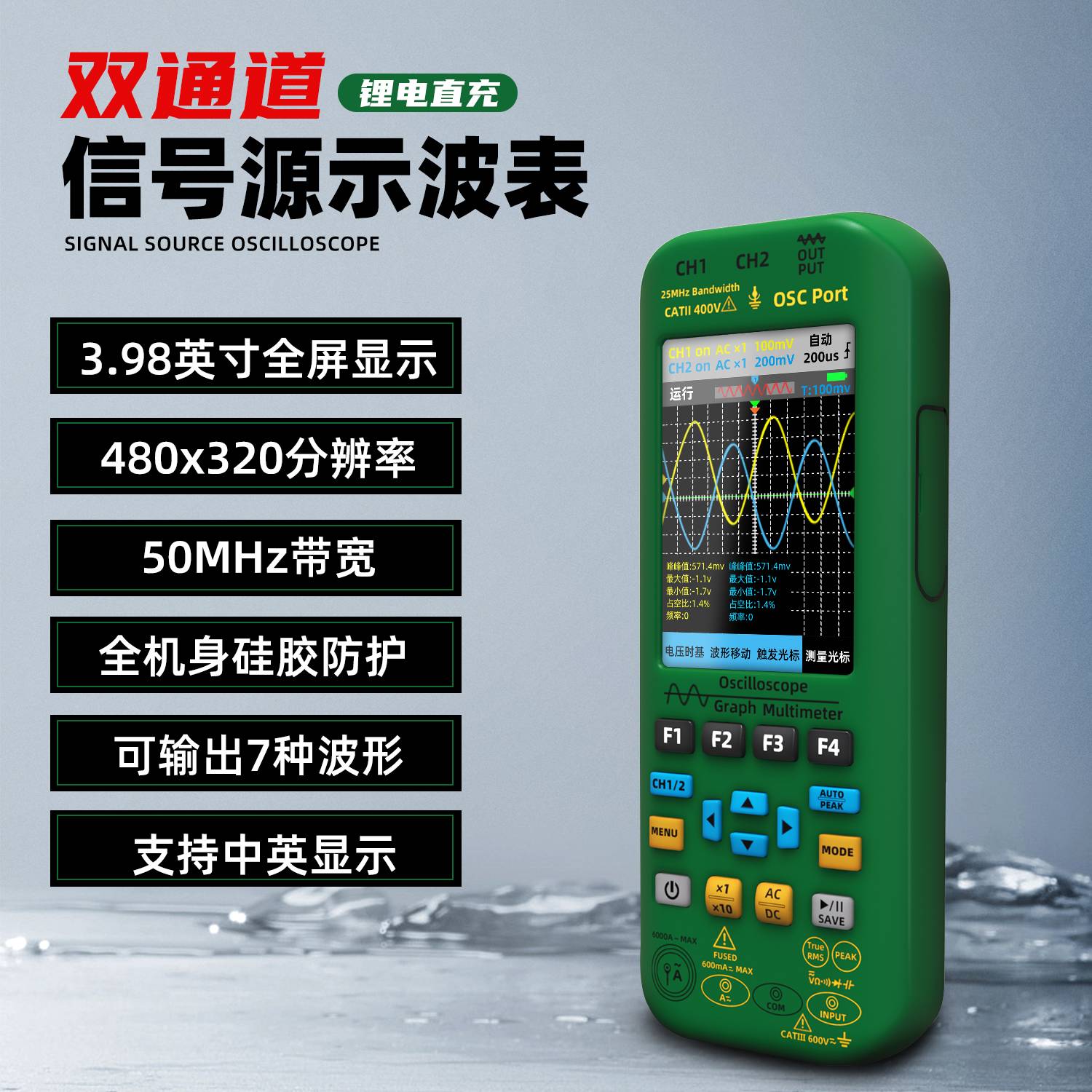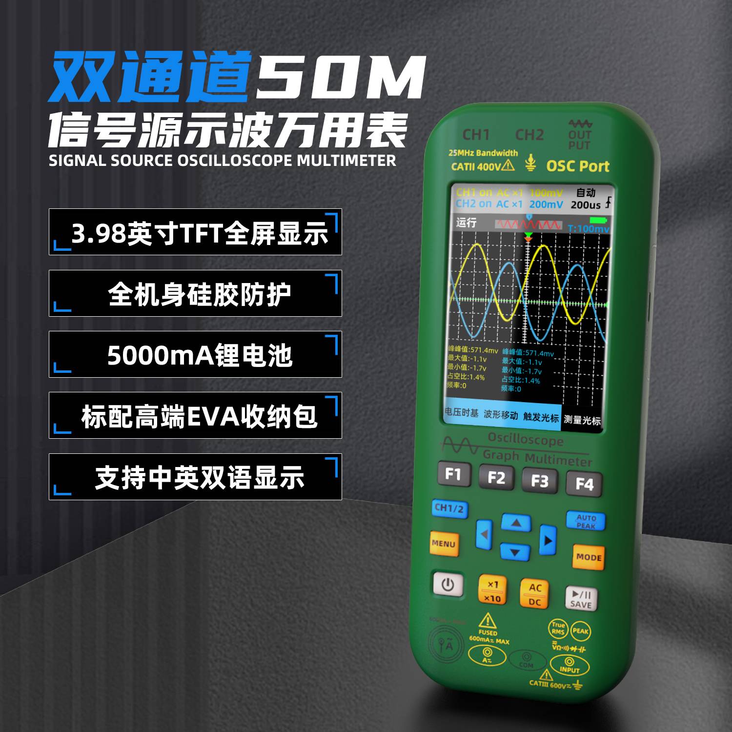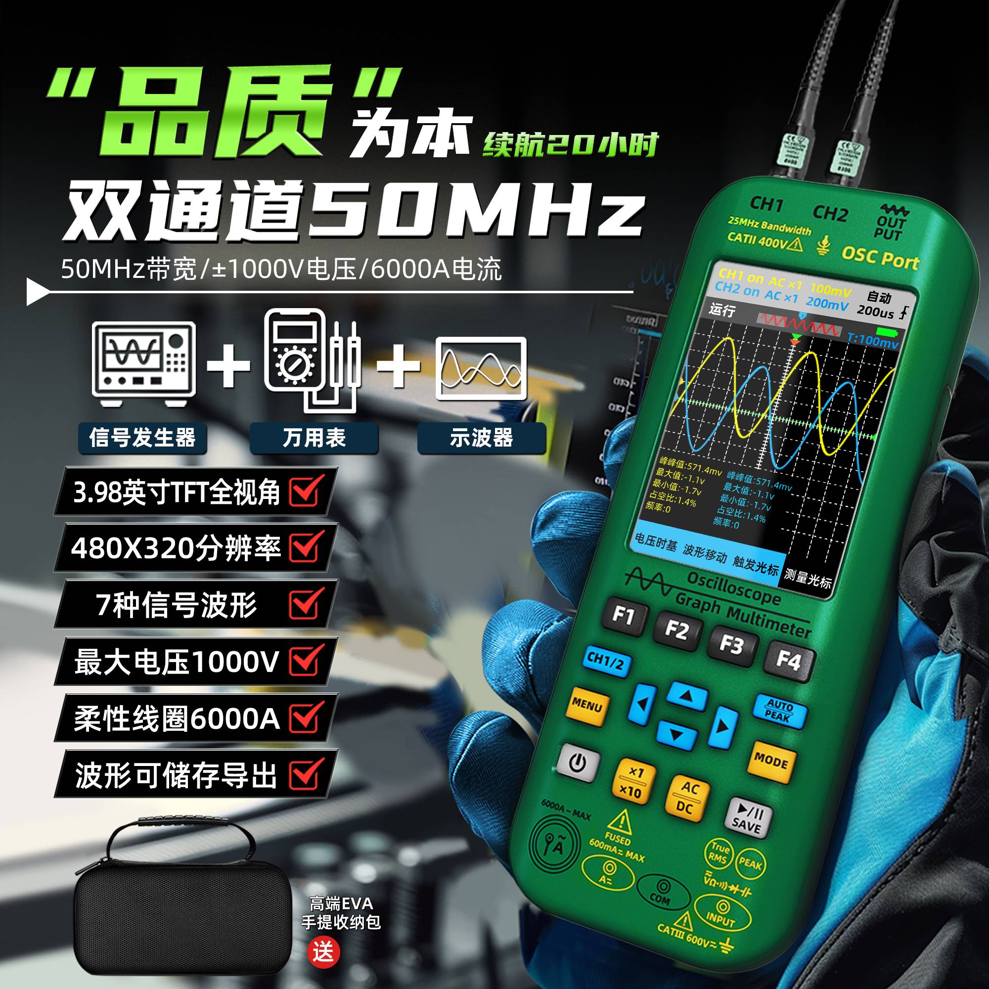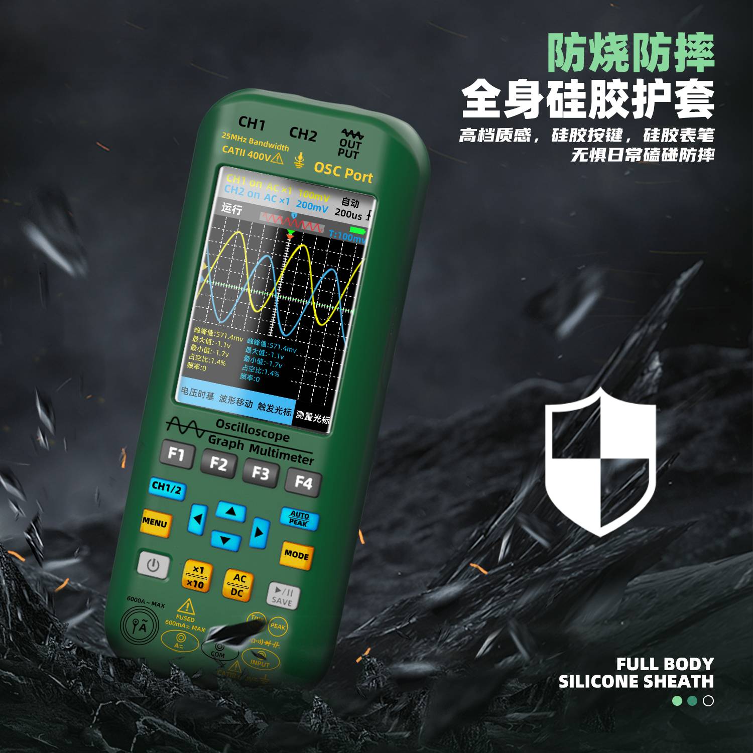 图像示波万用表BSIDE-O7宽带:50MHz 通道:2 实时采样率:250MSa/s 显示屏:TFT彩屏 最大显示值:6000数字 功能:交直流电压/交直流电流(mA)/电容/ 电阻/温度/通断/二极管/交流电流 -