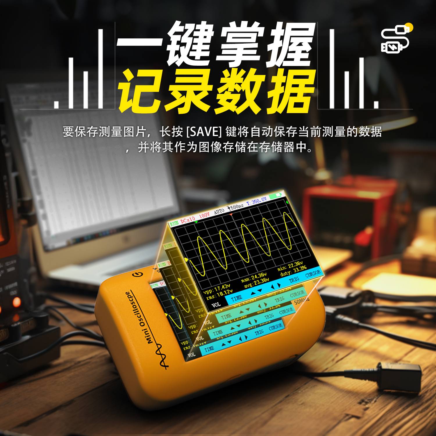 迷你示波器BSIDE-OT4(50MHz)宽带:50MHz 通道:1 实时采样率:200MSa/s 显示屏:TFT彩屏 信号输出:1KHz/方波,正弦波,三角波 半波,全波,锯齿波 -