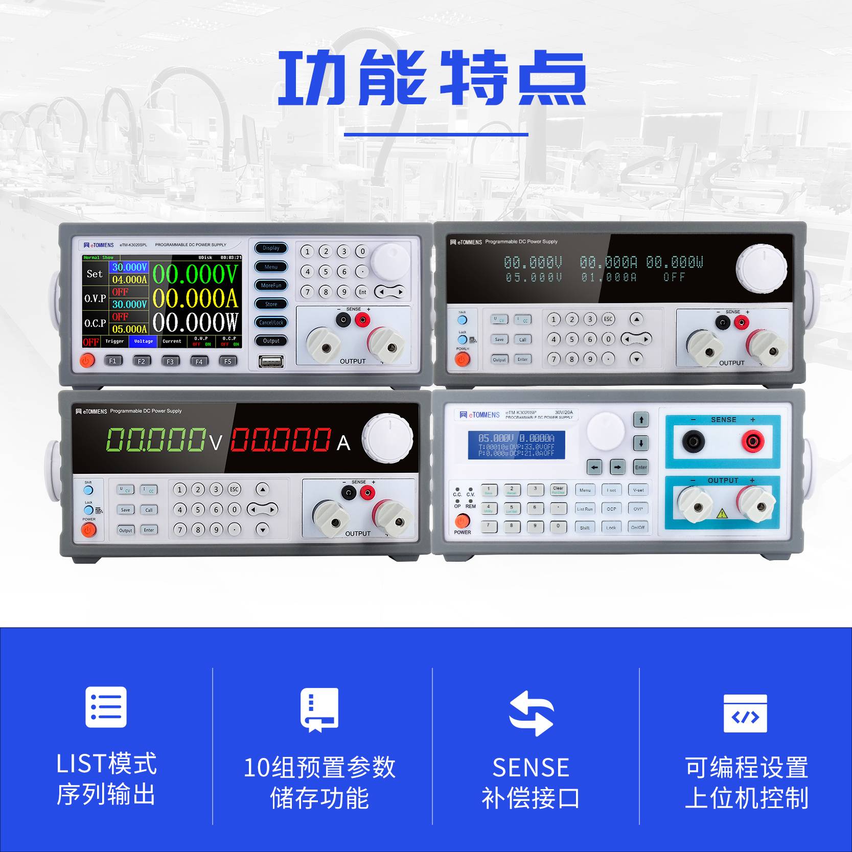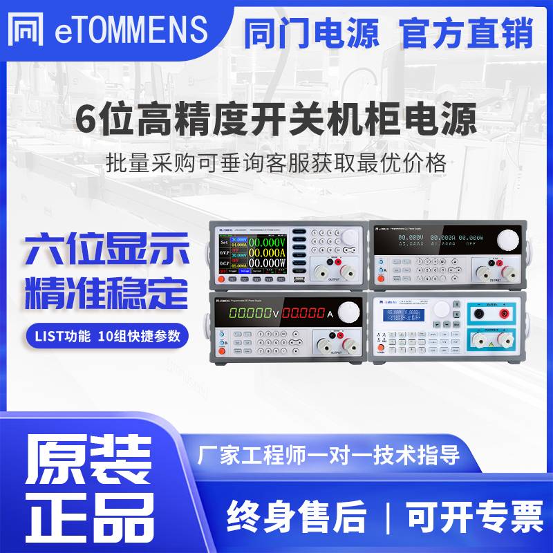 同门5位高精度机柜式开关可编程直流稳压电源高分辨率与高精确度,分辨率:0.01mV/0.01mA;前置+后置双串口模式,方便开发人员与集成设备,标准2U高度机箱,可双机并排安装于机柜。内置蜂鸣器作为提示或警告;可存储/调用 100 组电压电流等数据;远程感应实现补偿负载线的压降,精度更高。