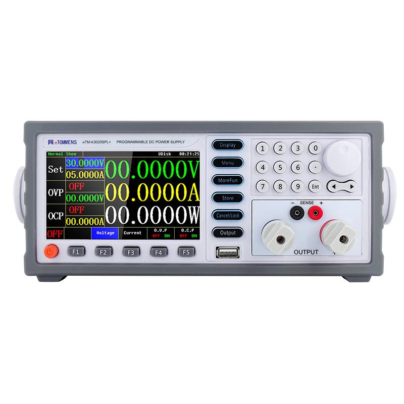 同门6000W台式编码器款直流稳压电源四窗数据显示,运行状态一目了然。编码器操作,调节更精准,更耐用。具备SENSE补偿功能,有效减少线损导致的压降。具备10mV/10mA分辨率;具备短路、过压、过流、过功率、反极性保护功能。输出效率高,一键控制输出通断开关。